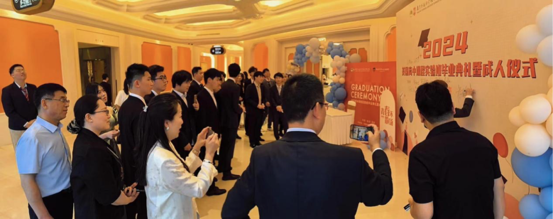 入场前全体毕业生和老师在签到墙上留下了他们的签名并拍照留念,这一刻将成为他们心中珍贵的记忆。