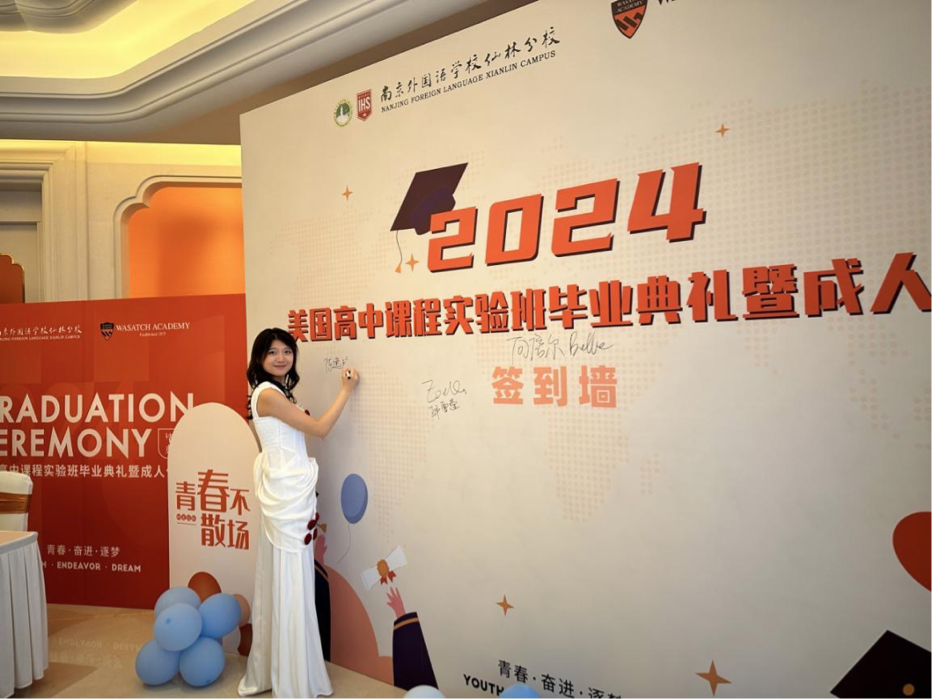 此外,他还特意安排了特别的教师代表团队为毕业生送上祝福和鼓励的话语。他的用心不仅体现在活动流程上,更渗透在每一个小细节之中。无论是舞台布置还是场内场外布局都透露出他对学生的深厚感情和美好祝愿。可以说刘主任既是这次典礼的“总导演”,也是“灵魂人物”,精心设计与安排了让校方、办学合作方天霖教育、美国瓦萨琪高中三方人员倾情为毕业生们筹备了这场精彩的毕业典礼,大家用无限的热忱为学生们打造了一个难忘的告别时刻,成为了所有毕业生心中难以磨灭的美好记忆。