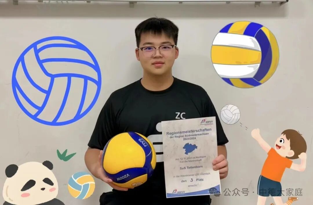 南外仙林2022届中德班学生,现就读于德国巴德萨克萨高级文理中学。中德期间担任英语课代表、物理课代表,南外仙林国际高中2022-2023年度戏剧达人,德语戏剧《画里画外》编剧、主演;参与编写并出演的话剧《生命在左》获南外仙林国际高中演讲节戏剧比赛一等奖。在南外仙林期间,为高中男子排球队队员;在巴德期间,加入市排球俱乐部,并多次参加省内比赛,参加下萨克森州OHA City School Cup并获得第二名(奖金200欧元)。