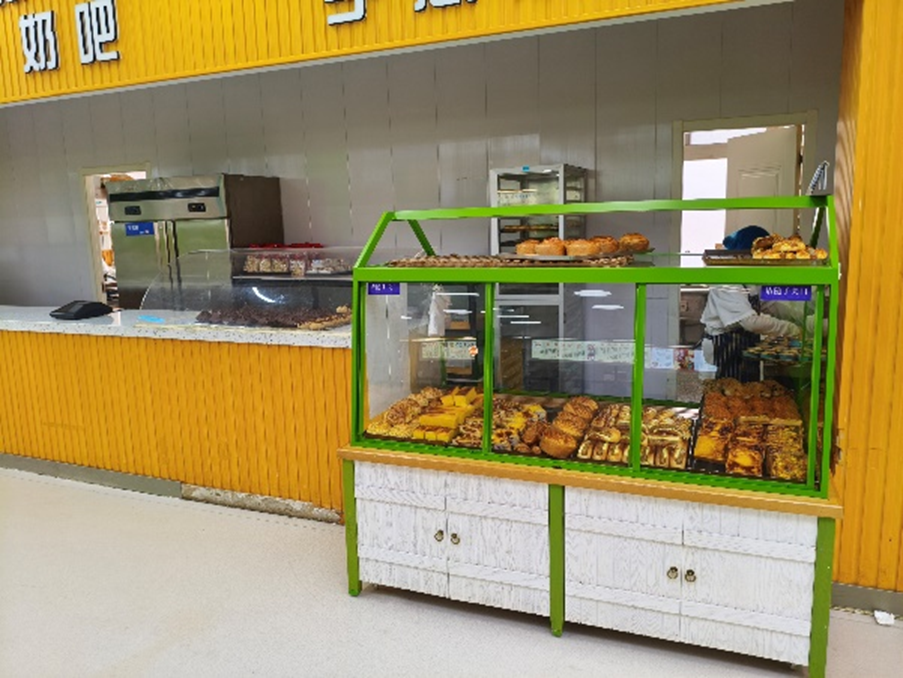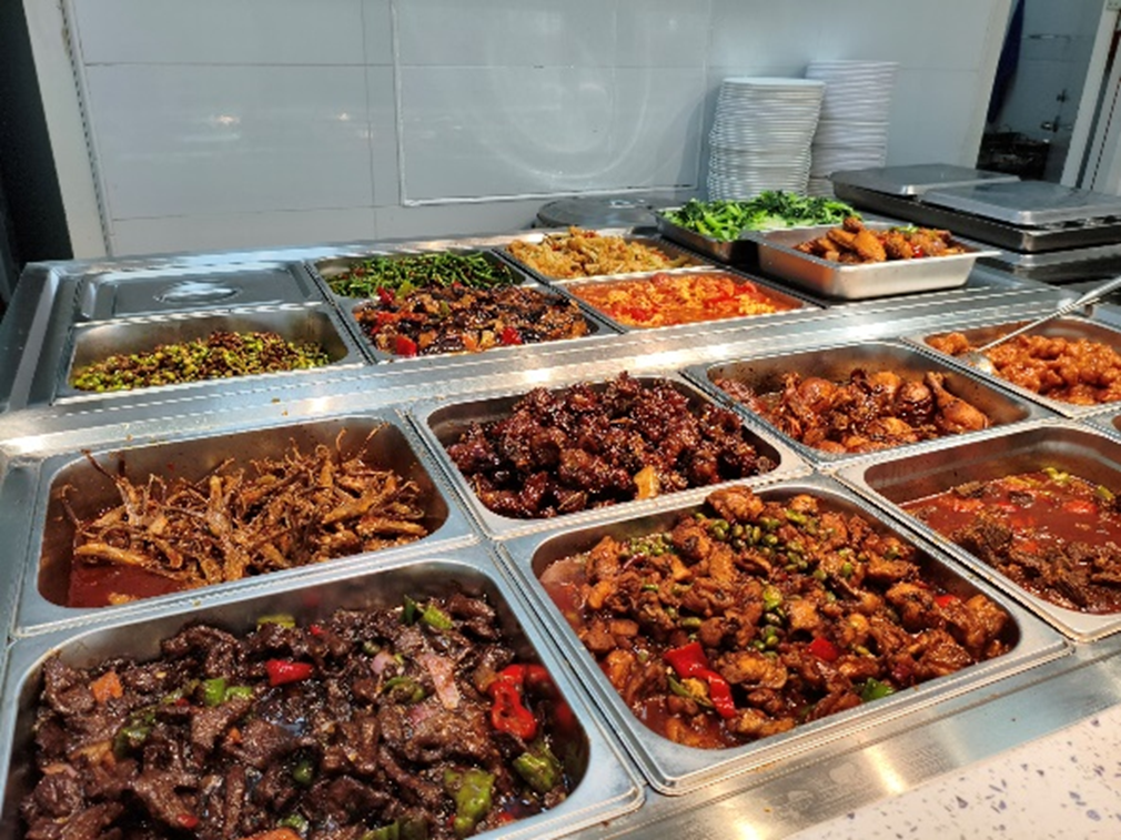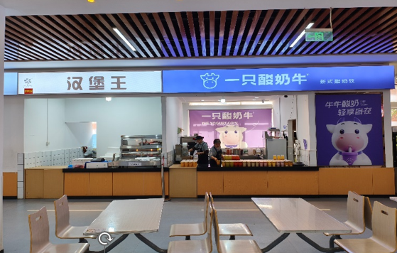 The first floor offers students, staff, and teachers many options for breakfast, lunch, and dinner. The first floor has a bakery, fast food, and juice stand (with fruit teas and bubble tea). There is also a “Mara tang”, a spicy soup with meat, vegetables, and tofu all boiled together in a bowl. They also offer plates with rice, a vegetable, and a meat option. Students usually line up outside to buy fruit.