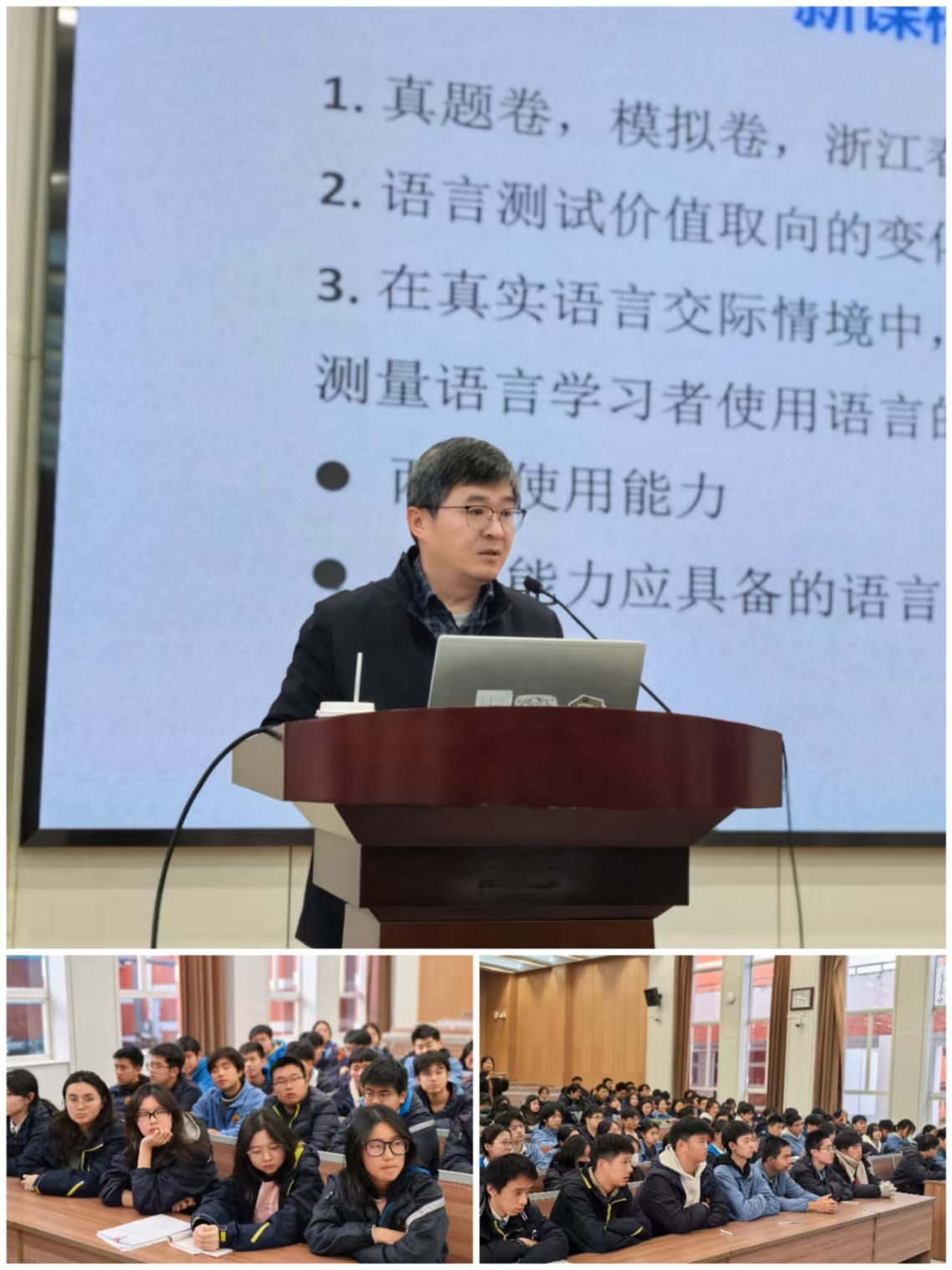 11月27日,为助力高三学子精准把握新高考英语写作要求、提升写作能力,高中英语教研组特邀南京市教研室高中英语教研员邢文骏老师,为全体高三学生开设“英语写作专项指导”讲座。现场互动频繁、气氛热烈,同学们收获满满。