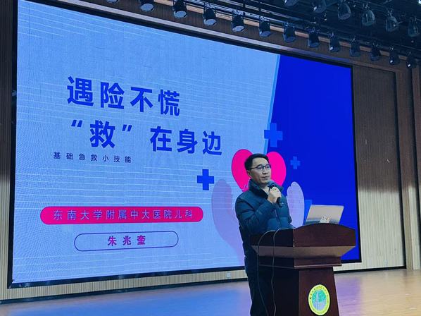 为提高学生的安全意识和自救互救能力,营造安全、健康的成长环境,我校悦雅家长学校于12月18日,特邀东南大学附属中大医院儿科朱兆奎主任,为同学们带来了一场生动实用的急救知识讲座——“遇险不慌,‘救’在身边”。本次活动由六年级组长康乐老师主持,全体六年级学生认真聆听学习。