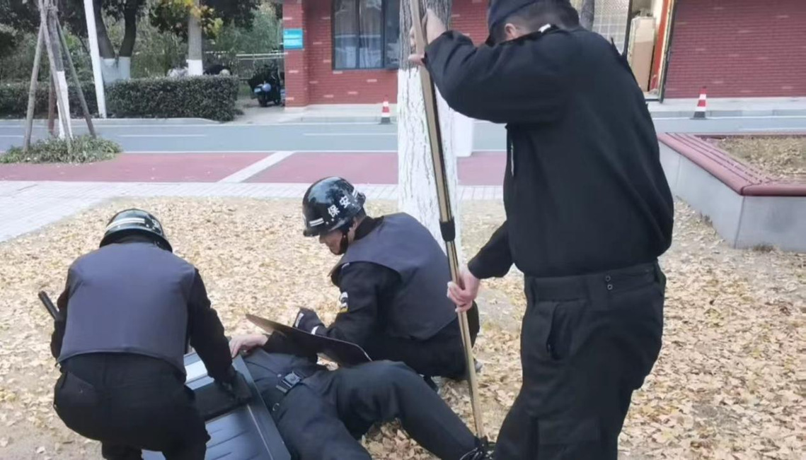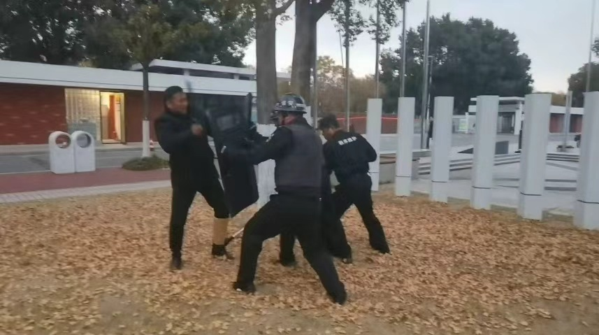 面对可能出现的突发安全隐患,校园安保团队从未松懈。内部常态化开展反恐防爆培训,安保人员系统学习防爆器材(防刺背心、盾牌、约束装备等)的操作使用,针对性训练突发冲突中的应急处置流程—— 从可疑人员识别、初期预警拦截,到紧急集合拉练、保护师生避险,每一个环节都经过反复打磨。我们深知,校园安全容不得半点马虎,只有让安保人员练就过硬的本领,才能在意外来临时迅速反应,为孩子们筑起一道 “坚不可摧” 的安全防线。