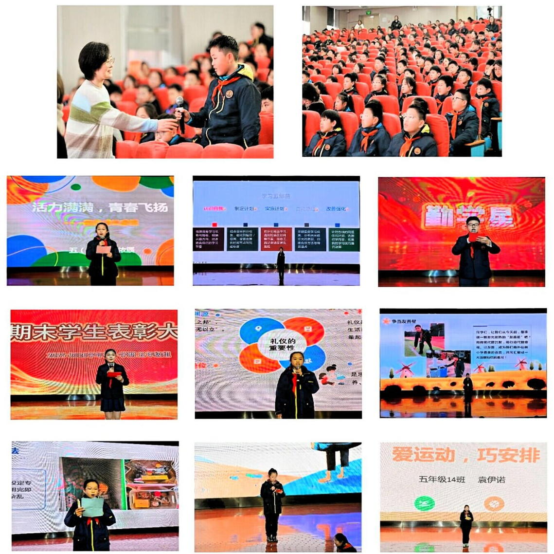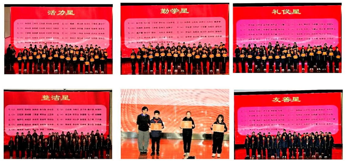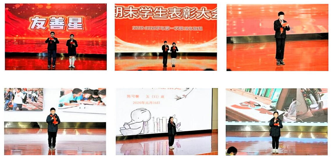 近日,南京仙林外国语学校小学部五年级期末学生表彰大会于 1 月 14 日、15 日陆续召开。以“五星闪耀,逐光而行”为主题,这场为期两天的表彰盛会,不仅为一学期的成长画上圆满句点,更以星光为引,为孩子们的道德素养成长点亮了前行之路。本次大会除了表彰“友善星”“礼仪星”“整洁星”“活力星”“勤学星”五类个人榜样,还特别颁发了最佳路队奖、文明就餐奖、文明问候奖、班级文化奖四项集体荣誉,让个人光芒与集体力量交相辉映。