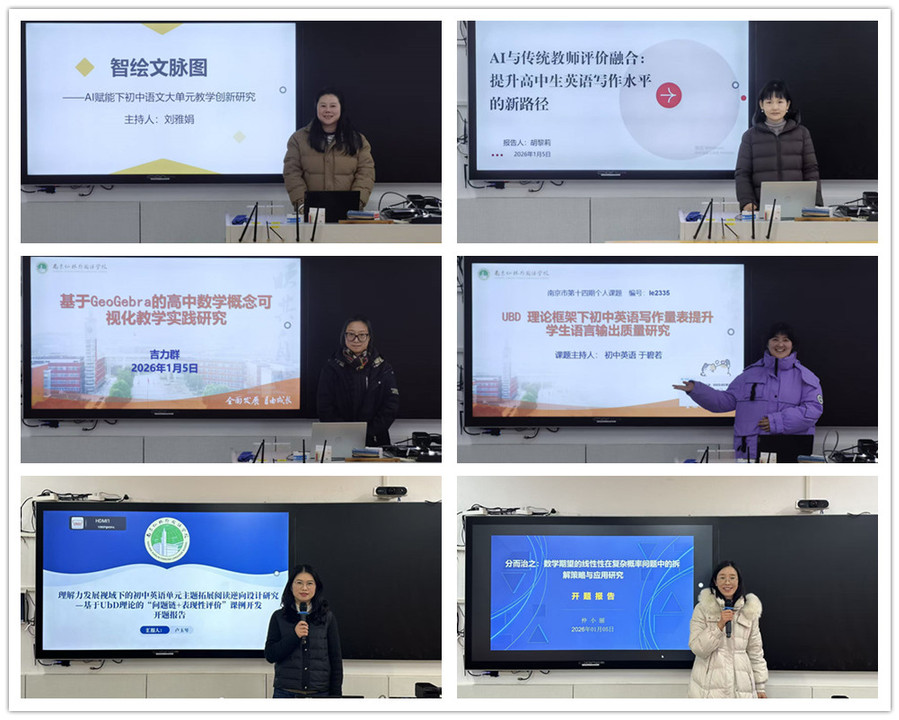 聚焦“技术融入教学、评价精准落地”核心需求,6项课题精准回应教学反馈滞后、评价不科学等痛点,彰显教研的锐度与精度。市级课题《“智绘文脉图——AI赋能下初中语文大单元教学模式的创新研究》,用AI工具重构语文大单元教学逻辑;《AI多元评价体系融合升级测评促进高中生英语写作水平提高的策略研究》,借智能评价破解英语写作反馈难题;《基于GeoGebra的高中数学概念可视化教学实践研究》,以数字工具让抽象数学概念具象化;《UBD理论框架下初中英语写作量表提升学生语言输出质量研究》,依托理论搭建量表精准提升语言输出能力;《理解力发展视域下的初中英语单元主题拓展阅读逆向设计研究——基于UBD理论的“问题链+表现性评价”案例开发》,以UBD理论为框架优化阅读教学评价;《分而治之:数学期望的线性性在复杂概率问题中的拆解策略与应用研究》,聚焦数学核心知识点探索问题解决的科学策略。