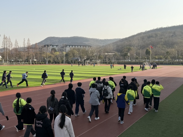下午两点,澳门东南学校师生代表团抵达我校北门。在外事办老师的热情引导下,代表团开启了校园参观之旅。一踏入校园,开阔的空间布局与浓郁的绿化环境便令澳门师生赞叹不已。与澳门学校紧凑的校园环境相比,我校广阔的校园空间展现出内地基础教育设施的完善与优越。尤其是看到标准化的足球场时,随行的男同学们更是跃跃欲试,纷纷感慨这样专业的运动场地为学生们提供了优越的体育锻炼条件,体现了内地学校对学生全面发展的高度重视。