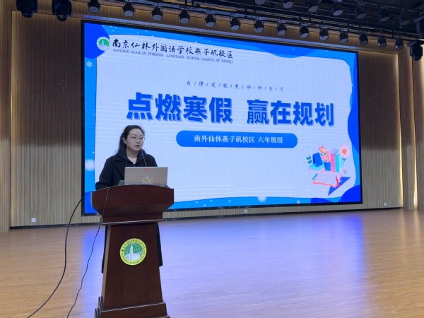 2月4日下午,南京仙林外国语学校燕子矶校区在年级组长康乐老师的主持下,举办了以“点燃寒假,赢在规划”为主题的寒假学习指导大会。