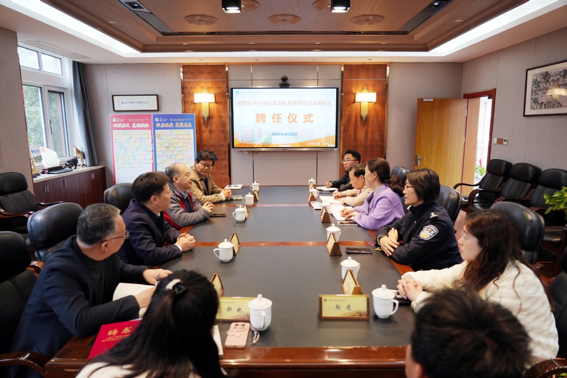 为扎实推进青少年法治教育,筑牢校园安全防线,3月23日下午,我校在仙林校区举办法治副校长聘任仪式暨“1+N”团队进校园活动。来自栖霞区司法局、公安分局等部门组成的法治副校长团队正式受聘我校,开启司校协同育人新篇章。