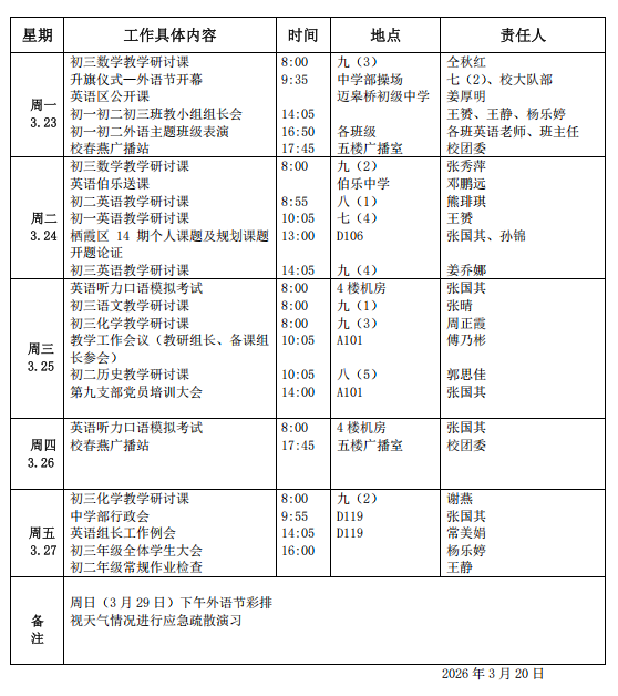 燕区中学部第四周工作安排(25-26学年第二学期)